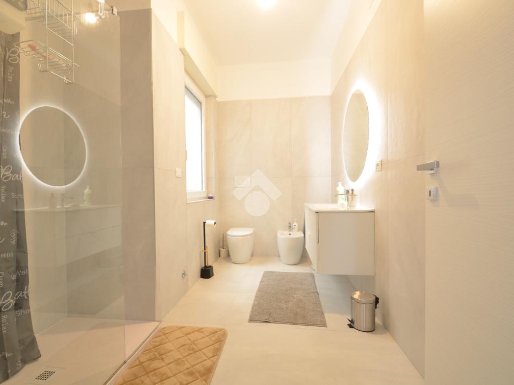Gli infissi sono Schuco a taglio termico, le tapparelle sono motorizzate e la caldaia è a condensazione. E’ stato realizzato l’impianto di climatizzazione e sono stati installati i collettori idrici nei bagni per gestire l’acqua sanitaria in totale autonomia.